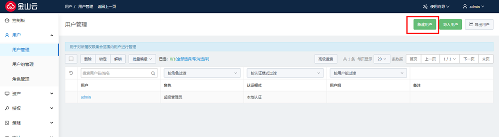 认证模式 | 选择用户登录金山云堡垒机的认证模式。