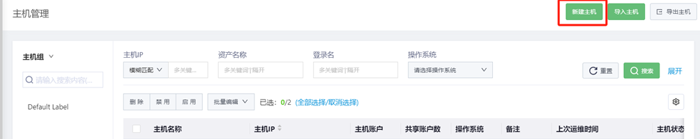 在系统菜单栏选择“资产>主机管理”,进入主机管理页面。
