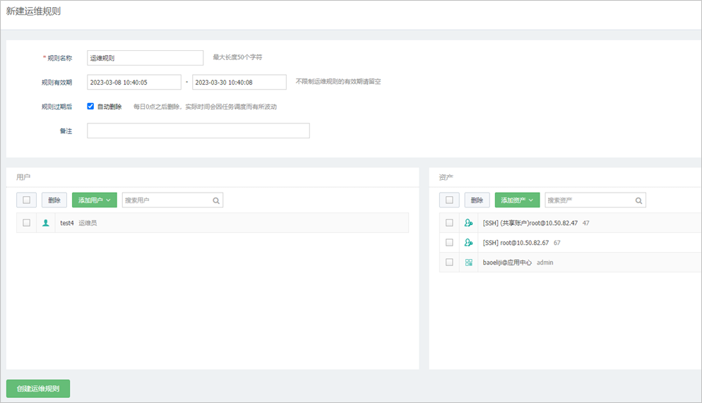 规则有效期 | 配置后,仅在有效期内生效并显示在运维列表中。如果留空,则永久有效。 |