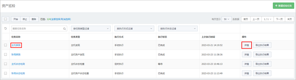 在系统菜单栏选择“任务>资产巡检”,进入资产巡检页面。