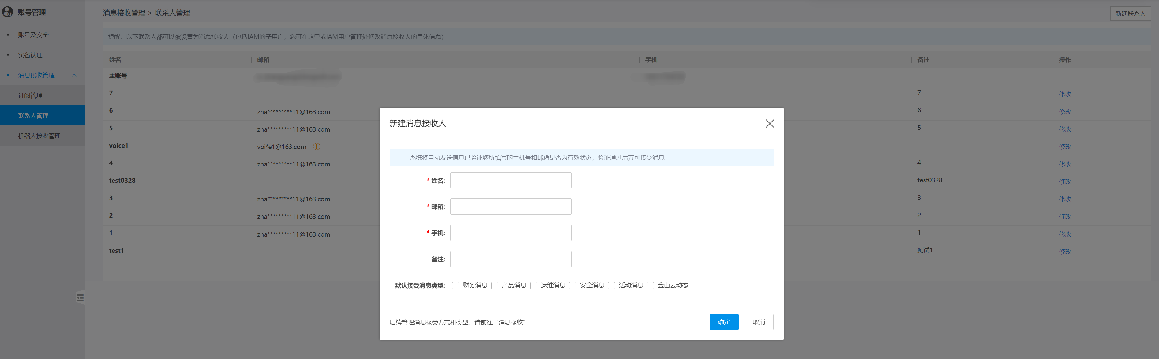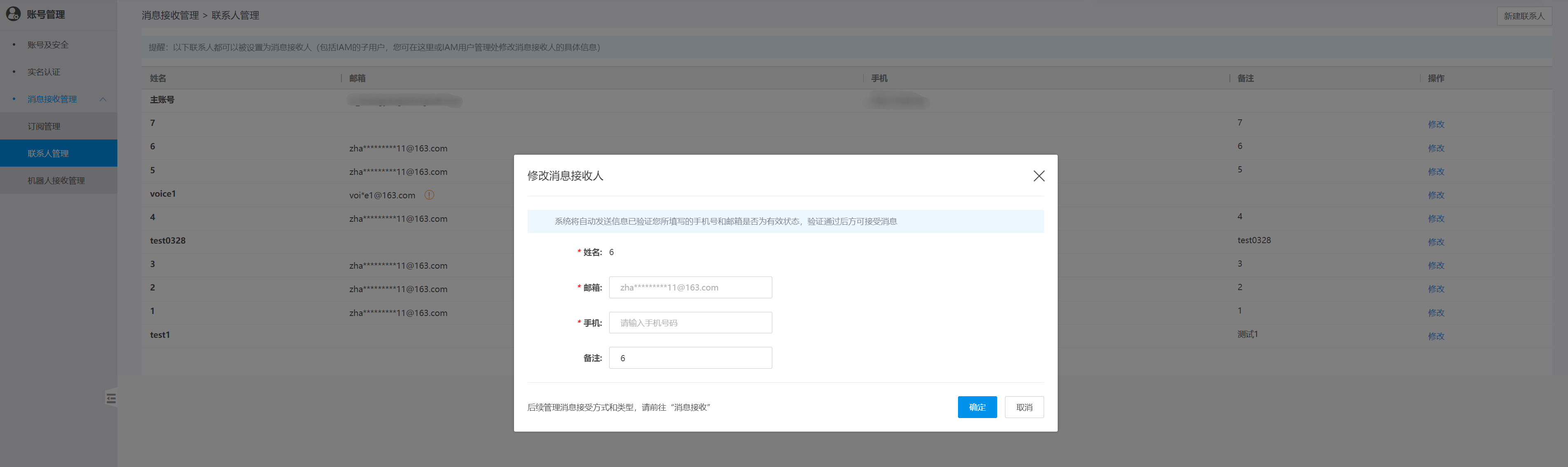 如果需要修改联系人信息,您可以在联系人管理页签,点击该联系人操作列的编辑按钮。在编辑联系人对话框中,修改联系人的信息,完成后点击确定。