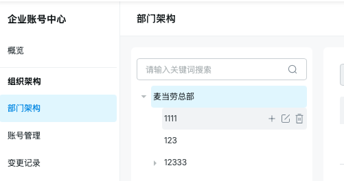 根节点作为账号移动的临时节点,所有加入进企业账号中心内的成员账号在未进行任何组织节点处理时均会默认被放置在根节点下,根节点为系统初始化节点,不可修改,不可删除
