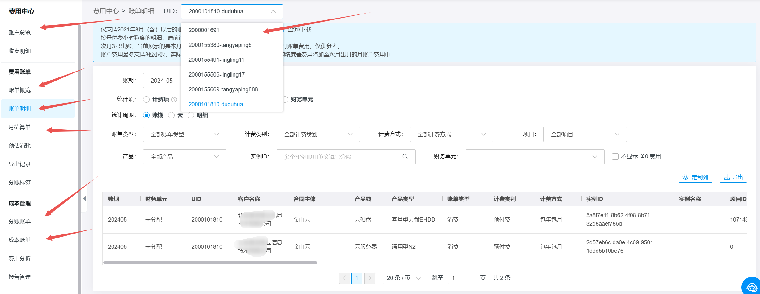 本文介绍如何查看其他账号的账单,包括账单总览、账单明细、月结算单等。