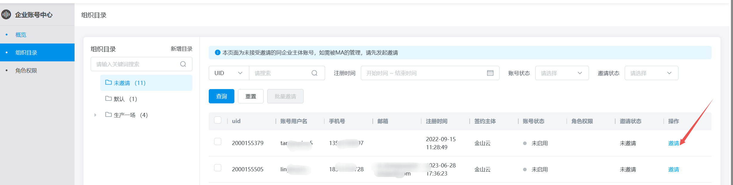 MA申请通过后,由MA邀请需要被管理的账号