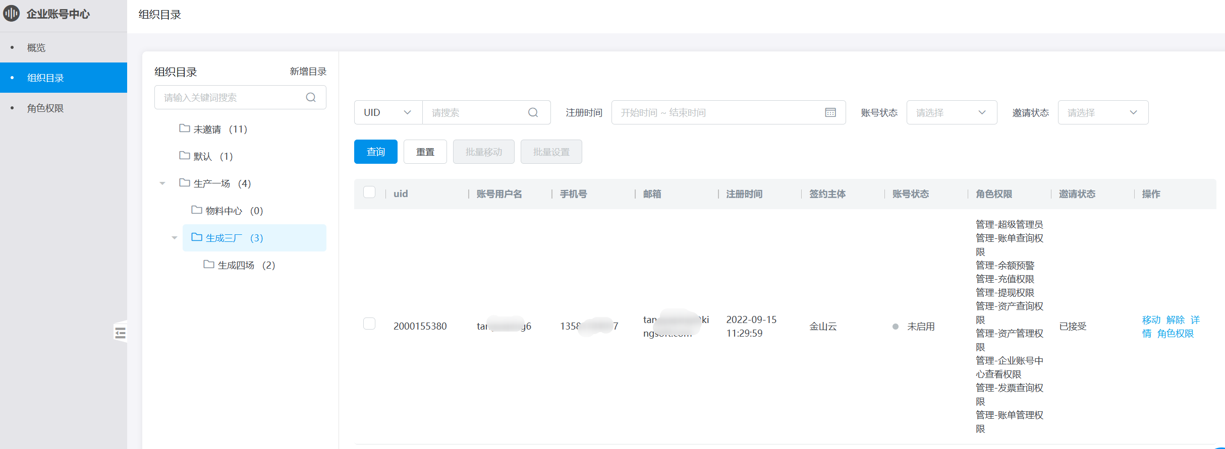处于组织节点中的账号,管理下级目录中所有账号(默认没有具体的管理权限)