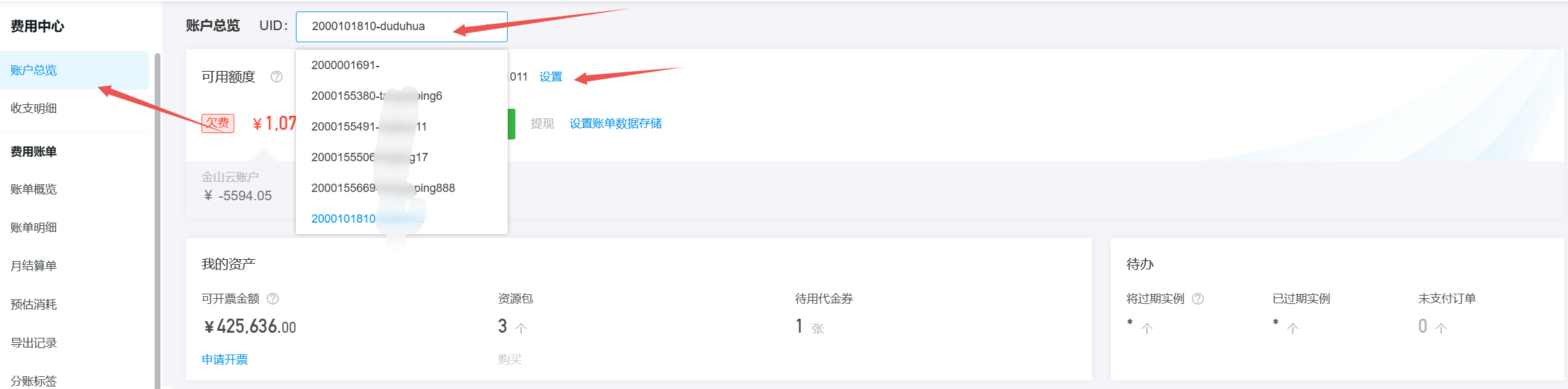 本文介绍如何查看其他账号的资产,包括充值、提现、代金券、资源包等。