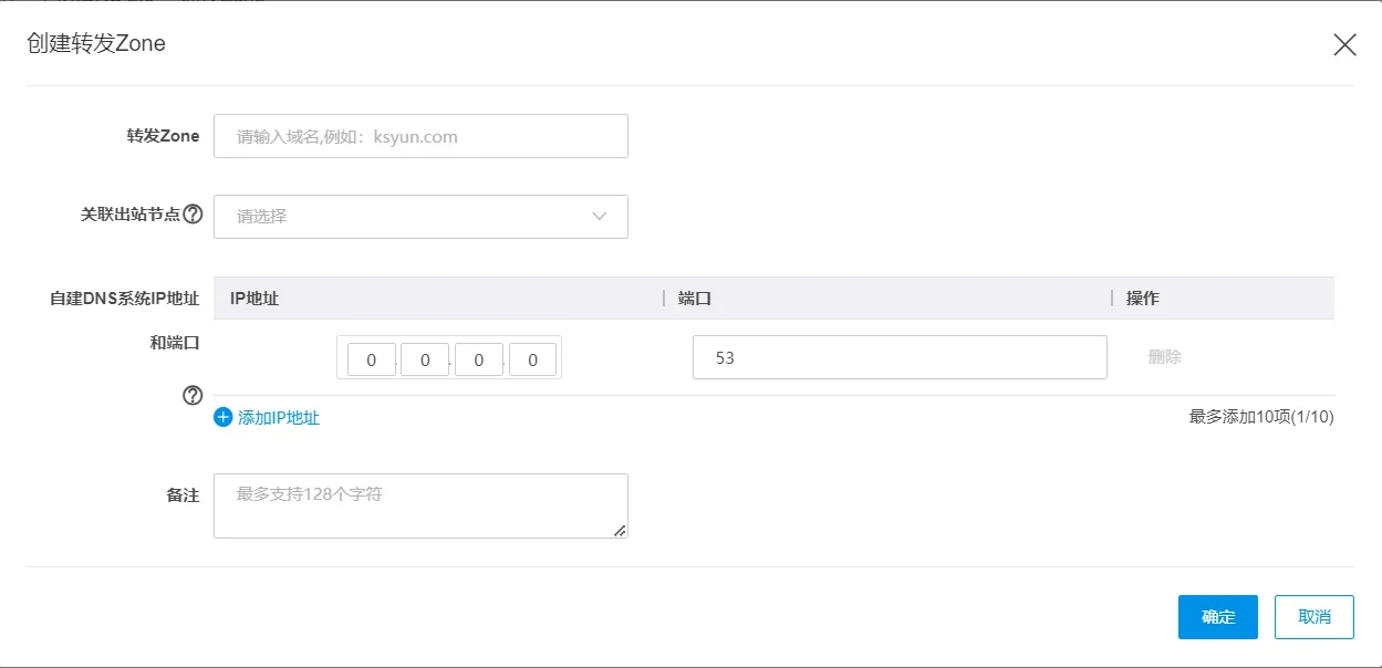 填写 转发Zone信息。