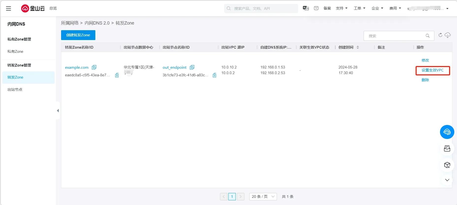 登录 内网DNS控制台,进入 转发Zone管理 -转发Zone列表页。