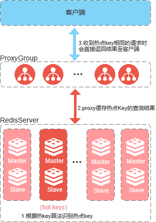 最终一致性:proxy节点缓存的热key(返回结果),在存活周期内不会进行更新,期间如果对热key进行修改类操作,仅对server节点上的数据进行更新,不会同步更新proxy节点的缓存数据。proxy缓存的热key(返回结果)到期后,server端会根据规则重新推送数据给proxy节点。即不保证从缓存中读取的数据与server端的数据是一致的,只能保证proxy端和server的数据最终是一致。