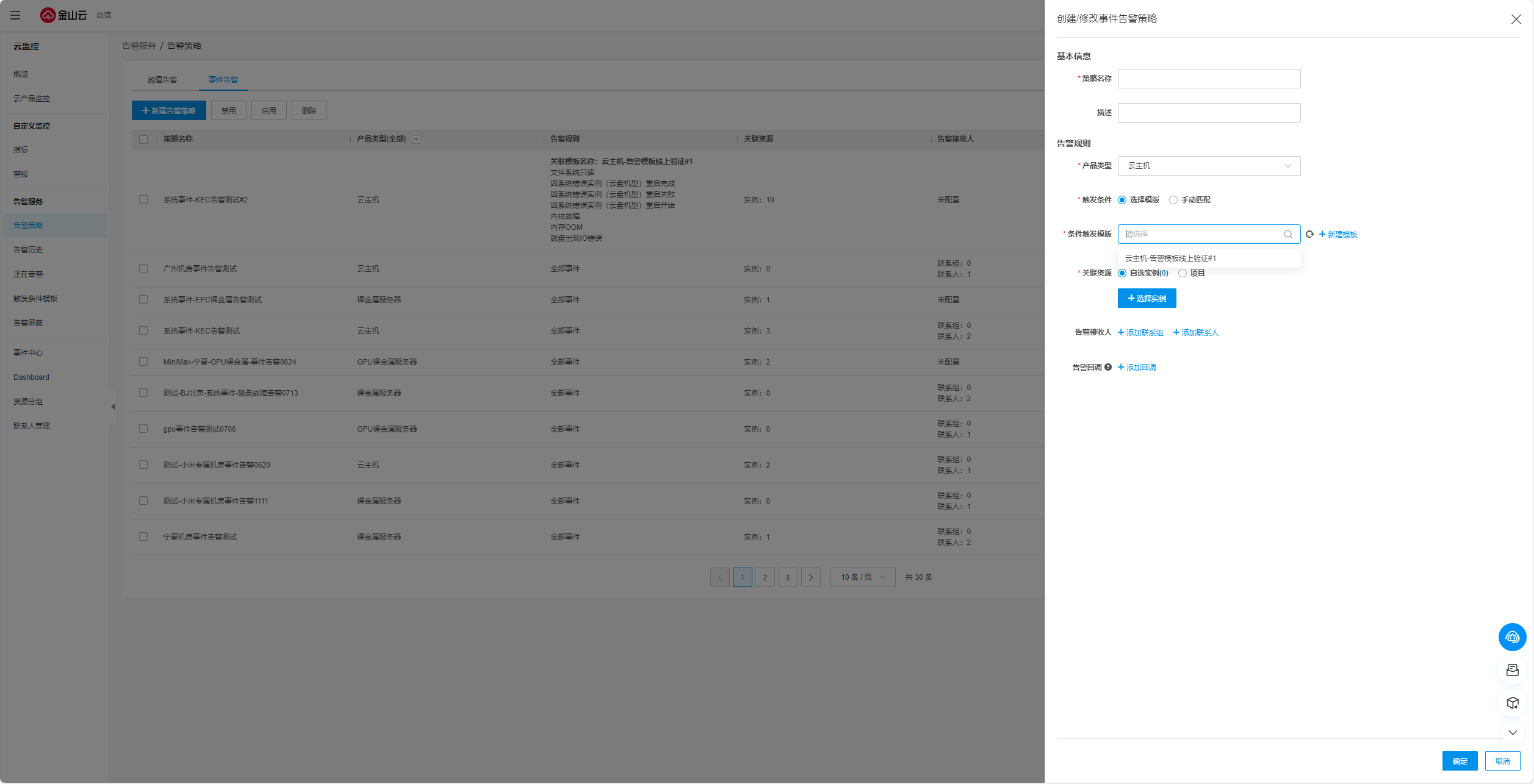 绑定策略数:当阈值告警或事件告警绑定至某条件模板,绑定策略数自动递增。