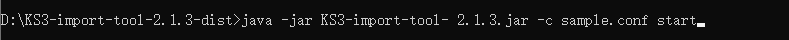 java -jar KS3-import-x.x.x.jar -c xxx.conf startxxx.conf 配置文件如果不和KS3-import-x.x.x.jar在同一个目录下,-c 需要指明配置文件的正确路径。