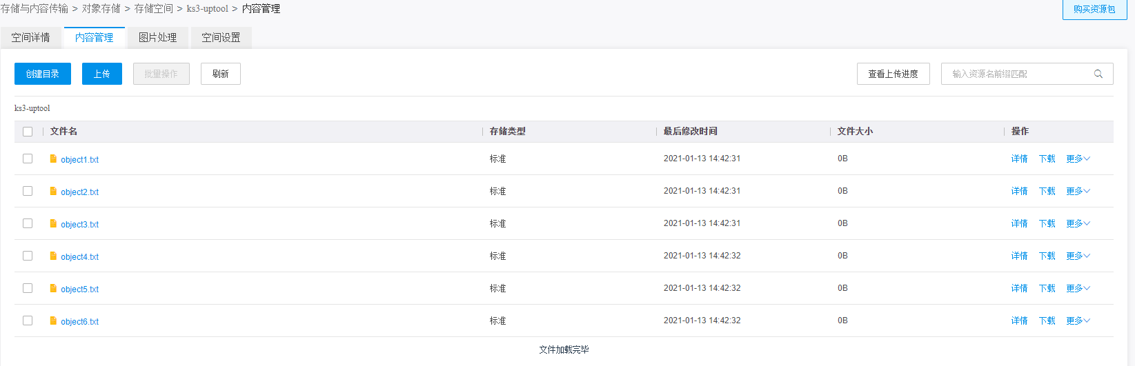 以上示例中,比如云存储中的某个对象路径为files/data1.txt,将生成以下objectKey: