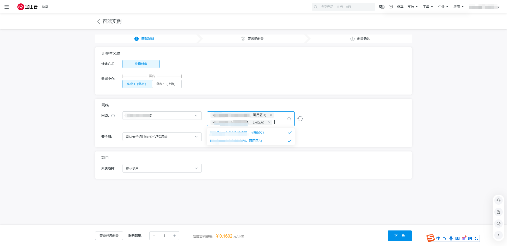 创建无集群KCI实例时,可以选择多个子网来指定多可用区。