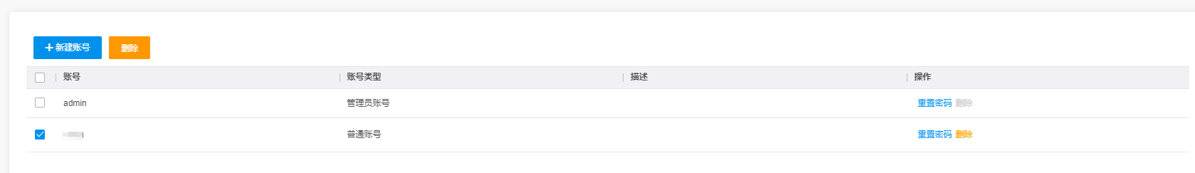 注意:账号类型为管理员账号时,不支持删除,只支持删除普通账号。