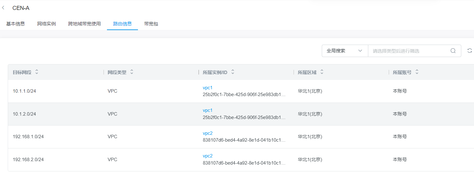 在云企业网列表中,单击需要查看的云企业网实例名称,在云企业网页面中单击“网络实例”