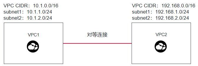 VPC1和VPC2已创建对等连接,在VPC1和VPC2的默认路由表中,有到对端VPC的CIDR,子网下的云主机可通过对等连接互通。