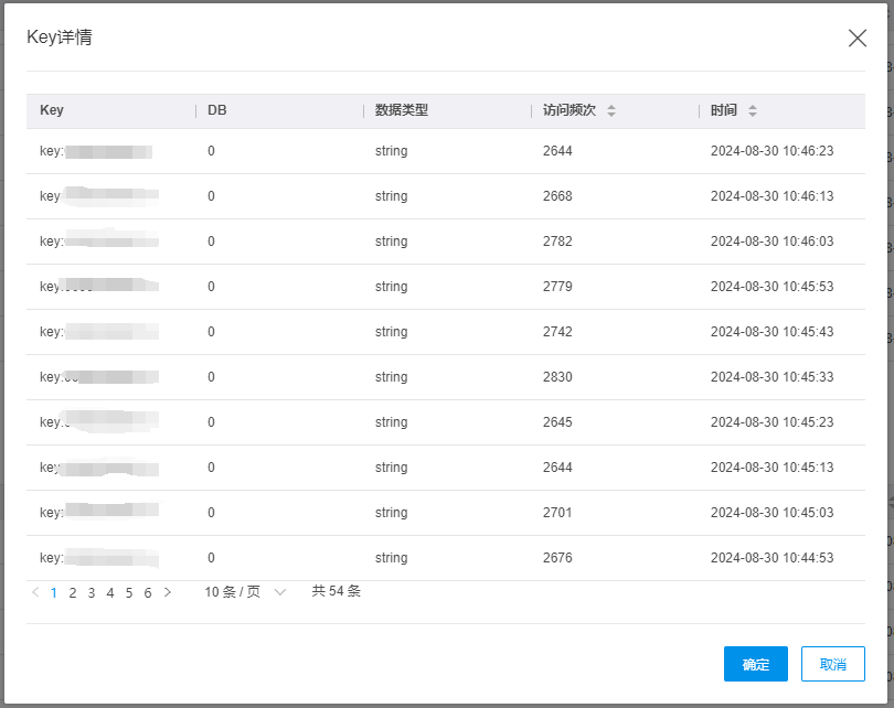 点击key名称,弹出对话框,展示所选时间段内该key的全部信息。