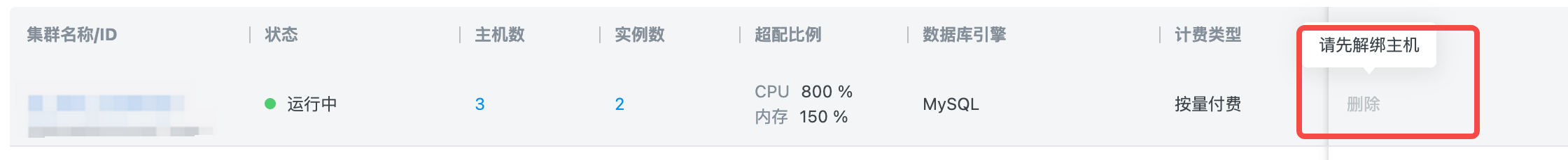 为保证您业务的稳定运行,删除专属集群前,请先删除数据库实例,解绑裸金属服务器节点,再删除专属集群。