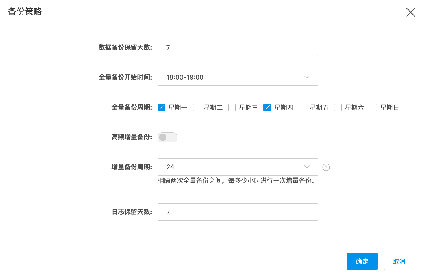 全量备份开始时间 | 全量备份的操作时间段。 |