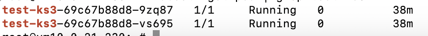 kubectl get pod | grep test-ks3选择其中一个Pod,创建文件。以test-ks3-69c67b88d8-9zq87为例。