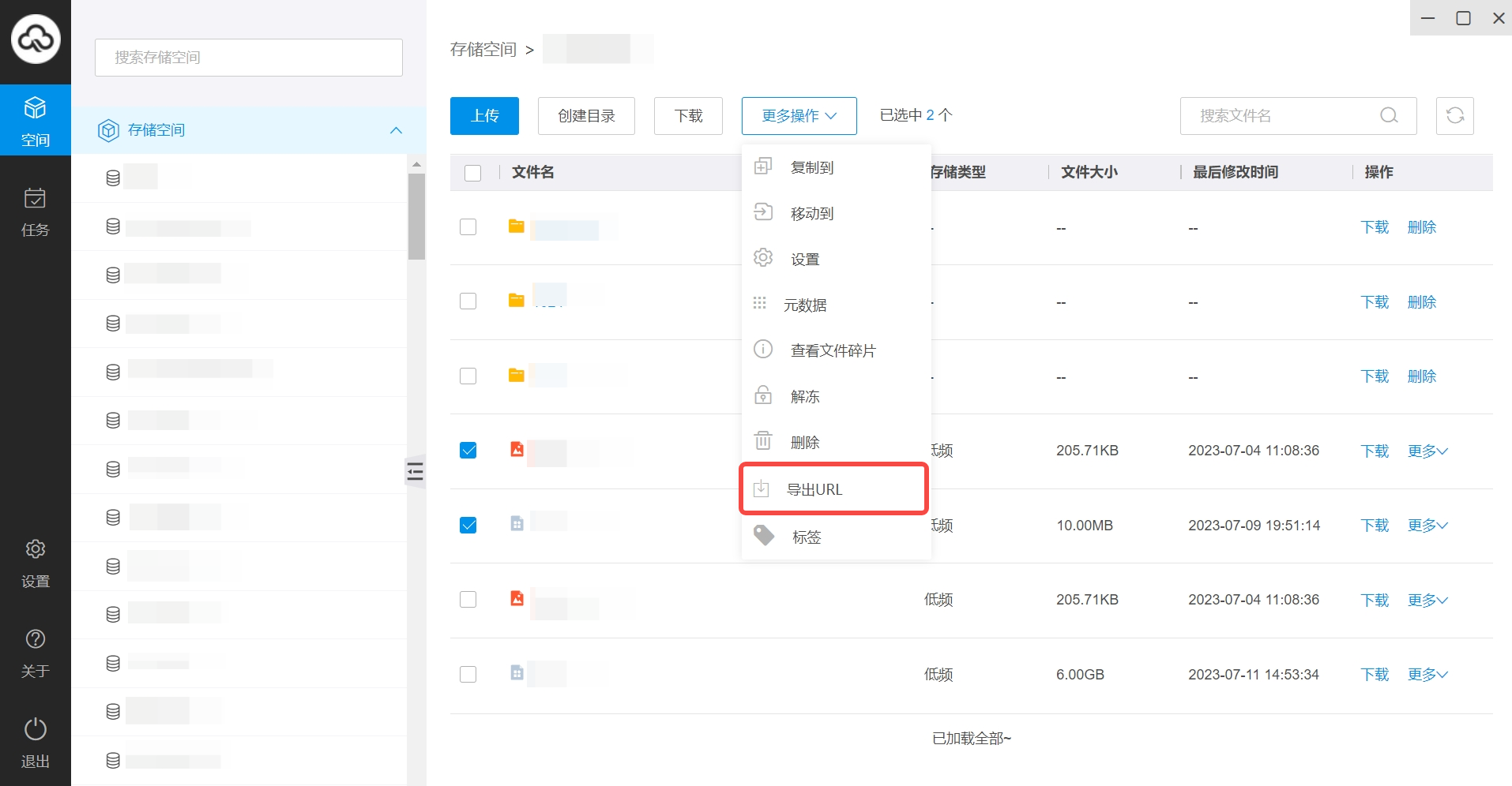 KS3 Finder支持批量导出文件的URL信息,选中目标文件后,点击【更多操作】➡【导出URL】。