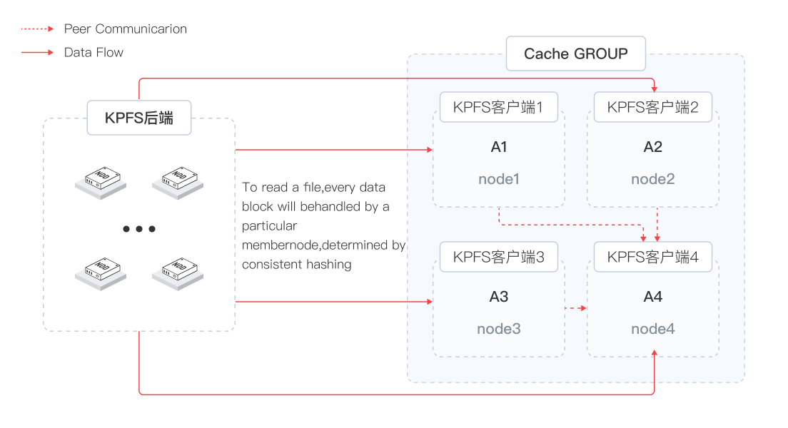 所有节点都加入同一个缓存组,读任何文件,都只需通过缓存组请求一次KPFS。
