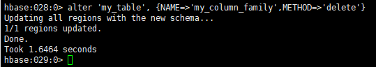 alter 'my_table', {NAME=>'my_column_family',METHOD=>'delete'}