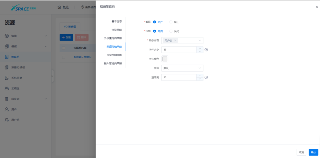 (1) 云空间支持丰富的策略管理: