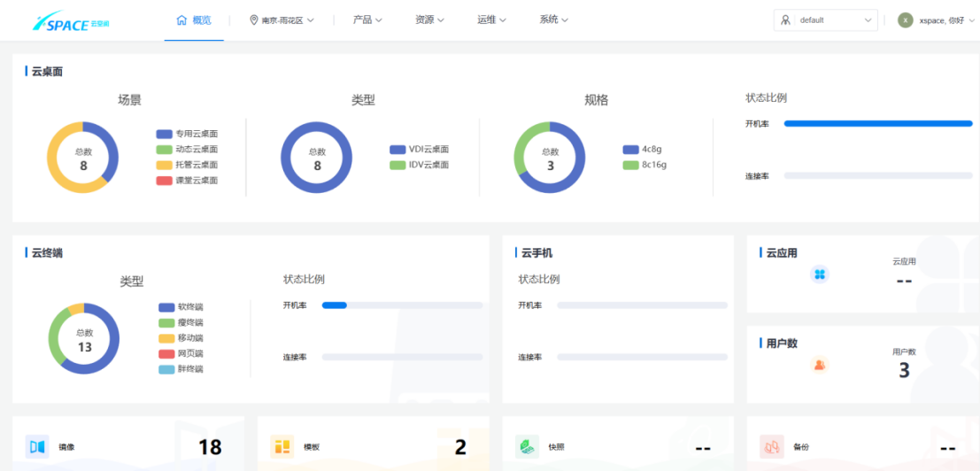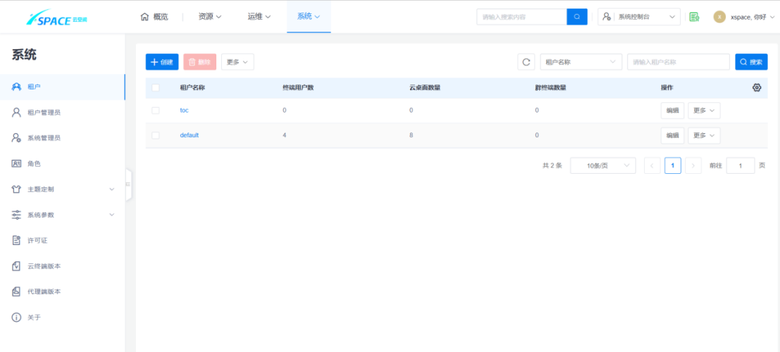 云空间产品具有对用户的数据分析能力,可以查看和导出租户列表,可以查看到该租户拥有的终端用户数、云电脑数量和胖终端数量。