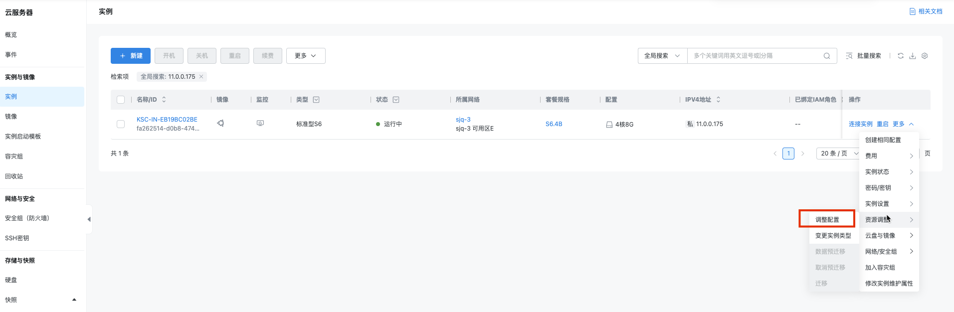选择变更后的规格点击确认,等待云服务器状态从调整配置中变为调整配置成功。