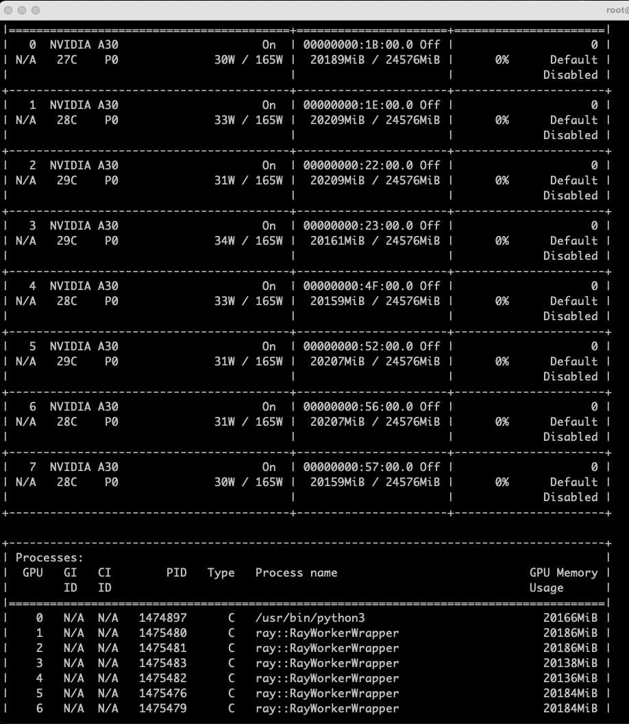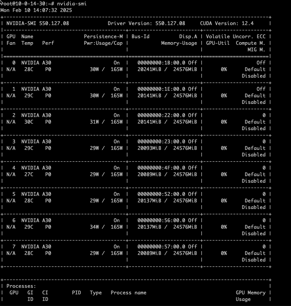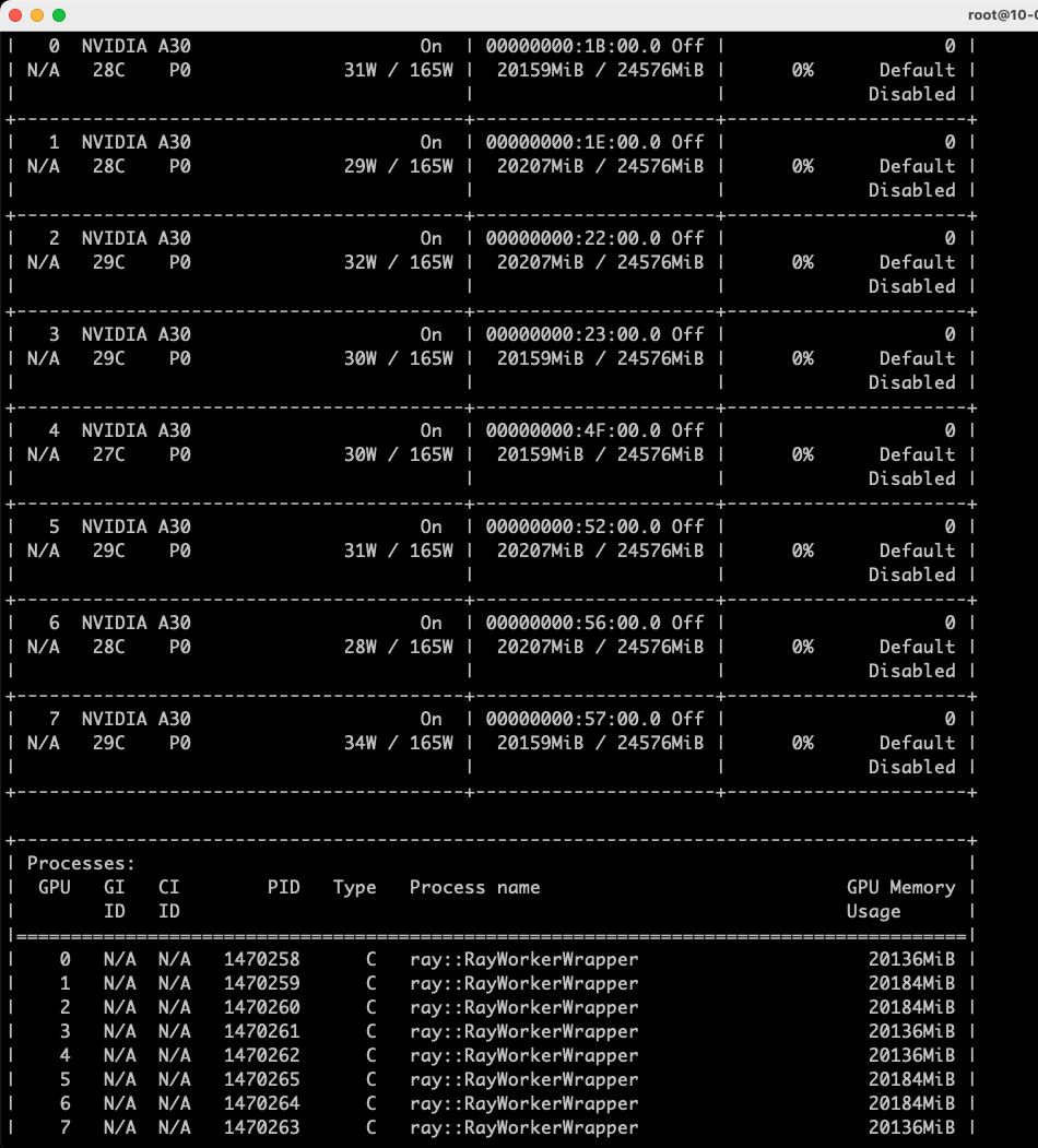 mountPath: /dev/shm模型启动后,执行Nvidia-smi命令查看GPU 运行状态;查看deepseek-r1-70b容器日志,检查模型运行状态。