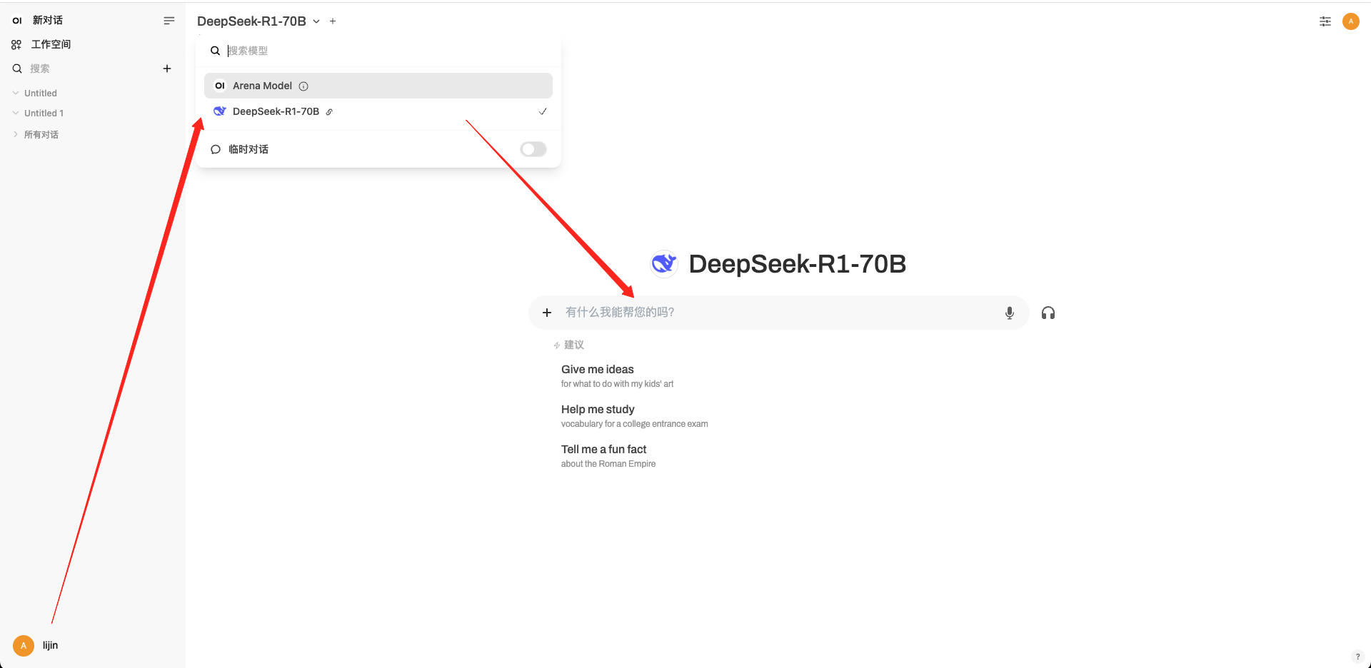 helm install openwebui open-webui/open-webui访问Service Open-webui,详见通过金山云负载均衡访问服务webui 连接DeepSeek-R1-70B。