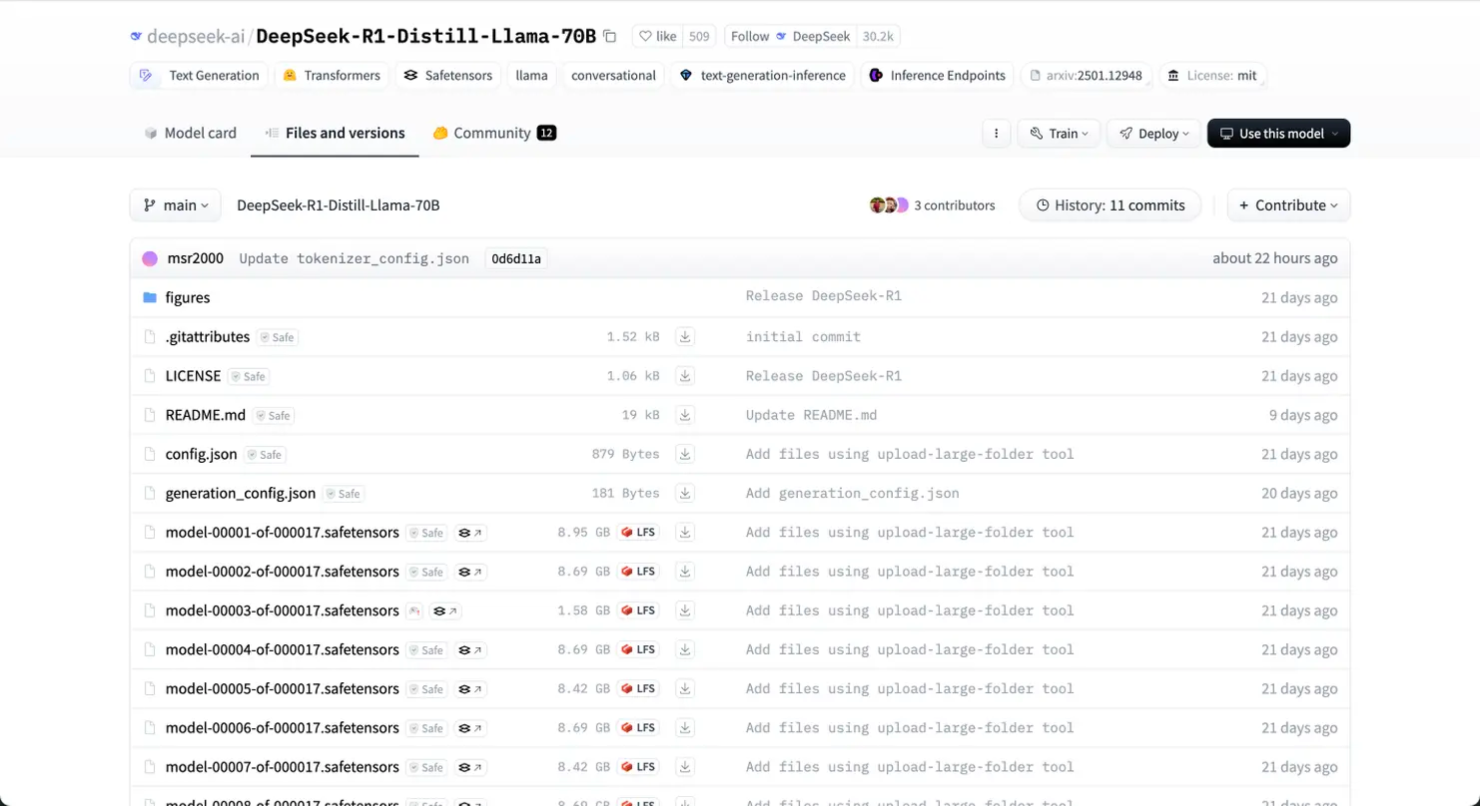 在部署DeepSeek-R1-70B之前,我们先执行如下命令,从Hugging Face下载DeepSeek-R1-Distill-Llama-70B模型。
