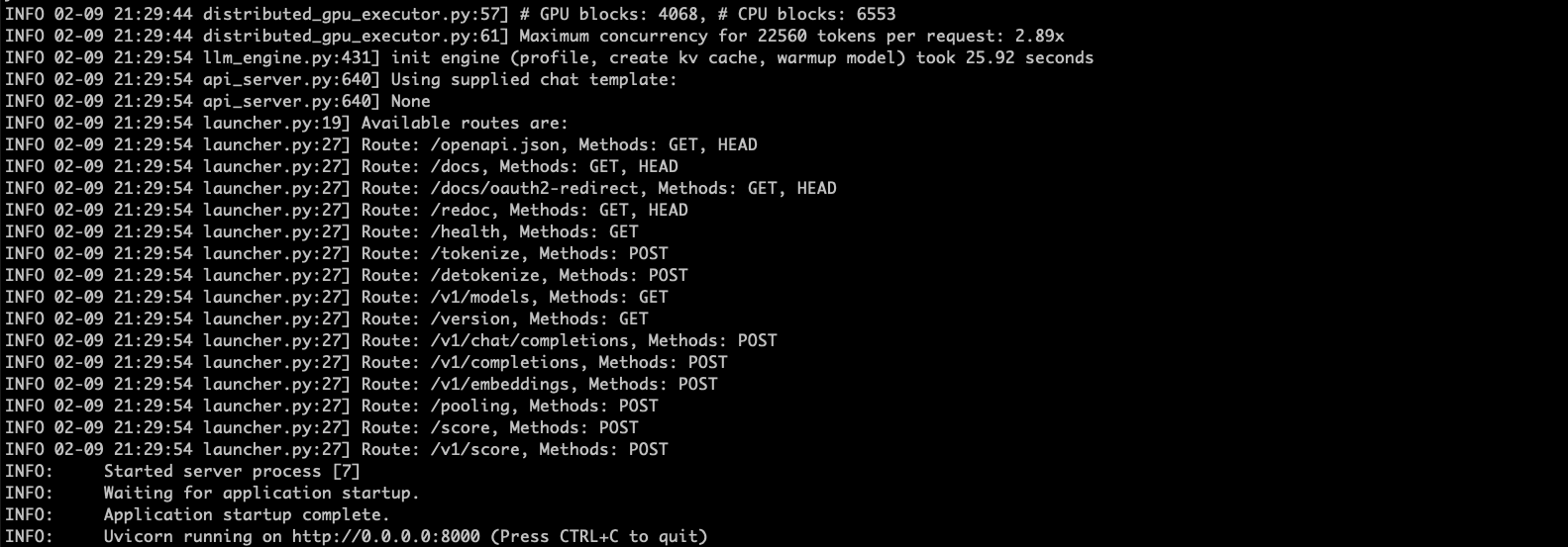 "python3 -m vllm.entrypoints.openai.api_server --model /root/.cache/huggingface/DeepSeek-R1-Distill-Llama-70B --tensor-parallel-size 8 --trust-remote-code --enforce-eager --max-model-len 22560 --port 8000 --api-key token-abc123"