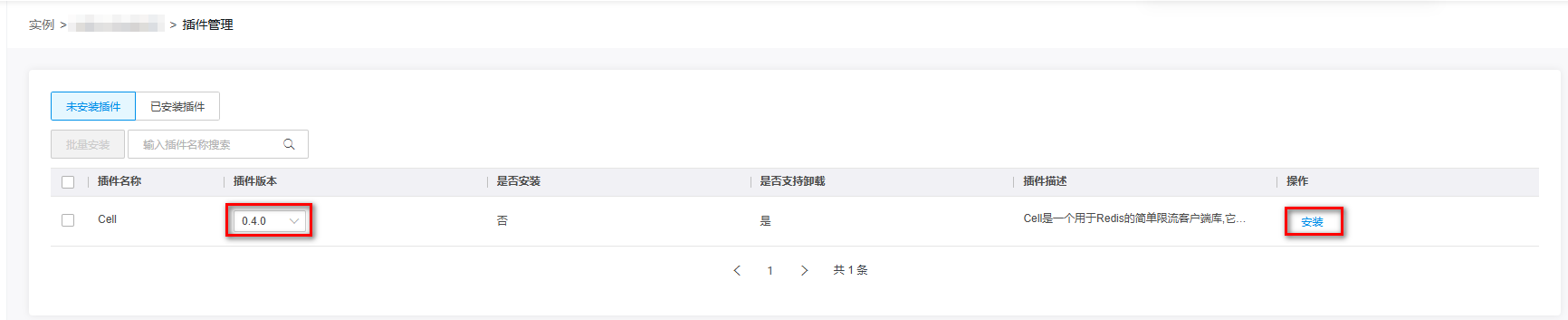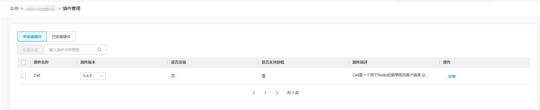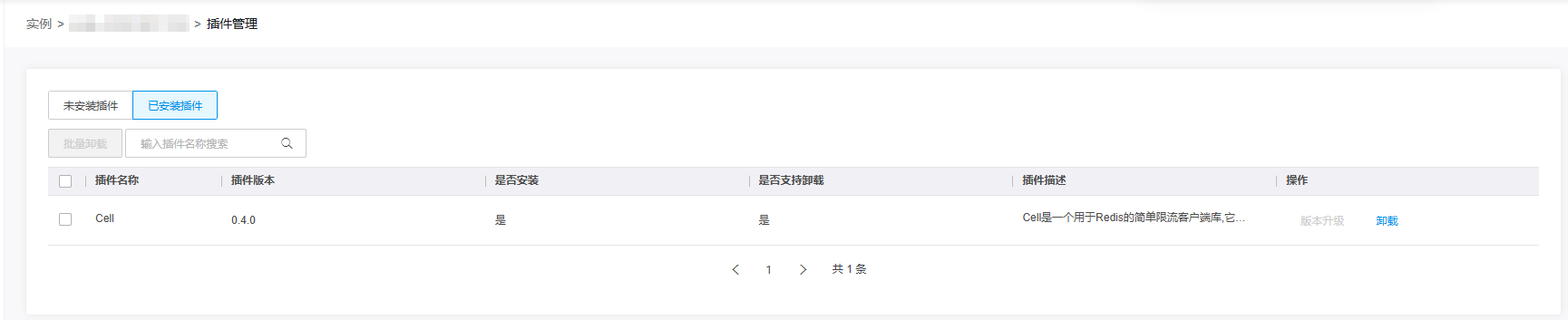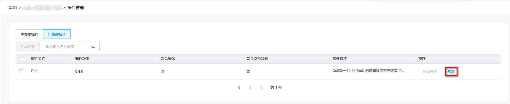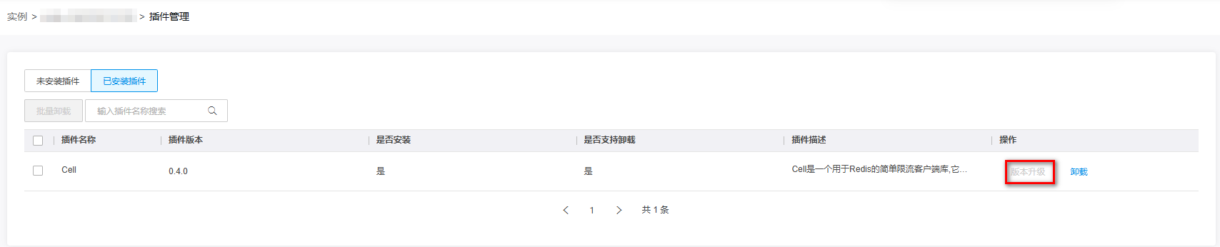 对实例进行安装插件、卸载插件、升级插件版本操作将有秒级闪断,请在业务低峰期操作,并保证程序有重连机制。