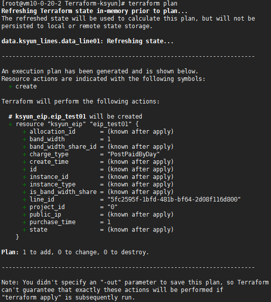 }执行 terraform plan 查看部署计划,