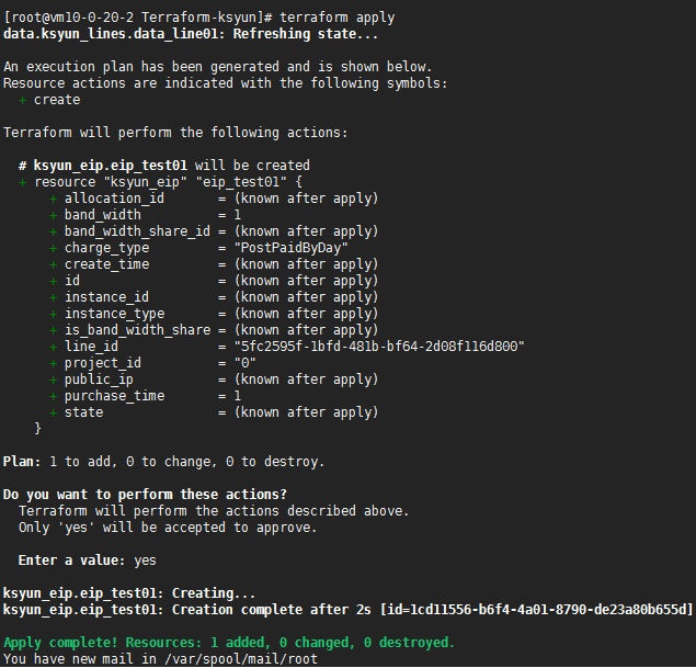 #terraform plan执行 terraform apply 进行资源创建