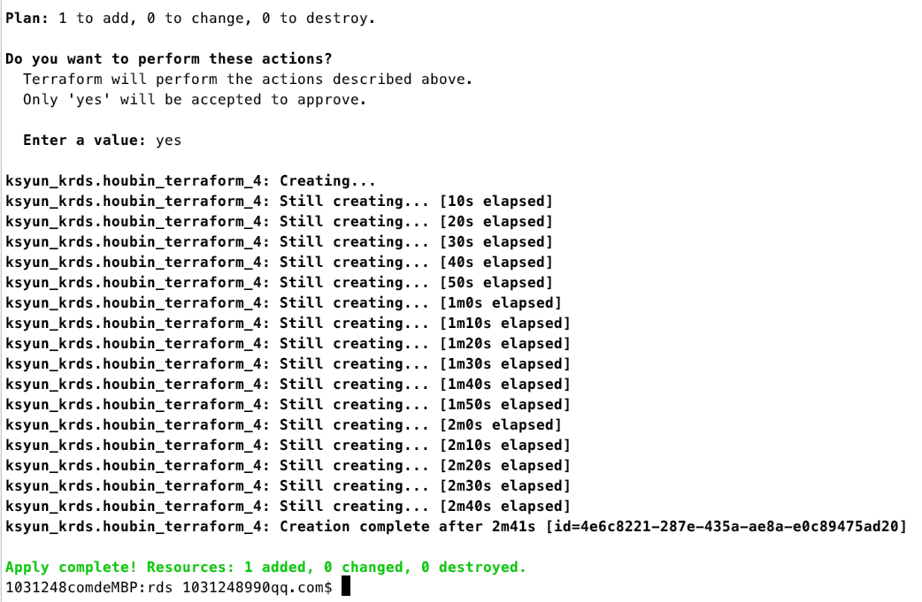 #terraform apply输入 yes ,显示成功创建资源