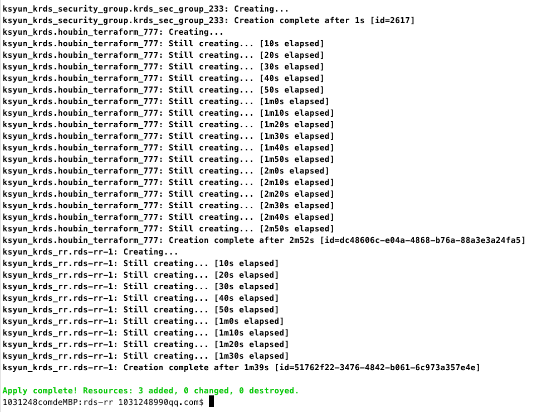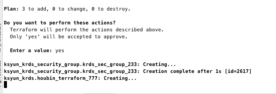 #terraform apply输入 yes ,显示成功创建资源