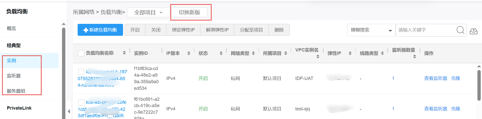 您可以负载均衡 > 经典型的实例、监听器、服务器组的旧版控制台,单击右上方的切换新版,直接进入新版SLB控制台。