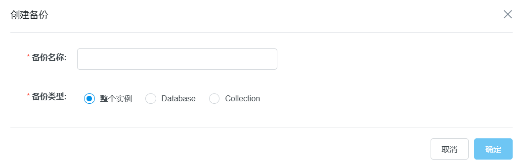2. 支持整个实例、指定Database、指定Collection的备份。