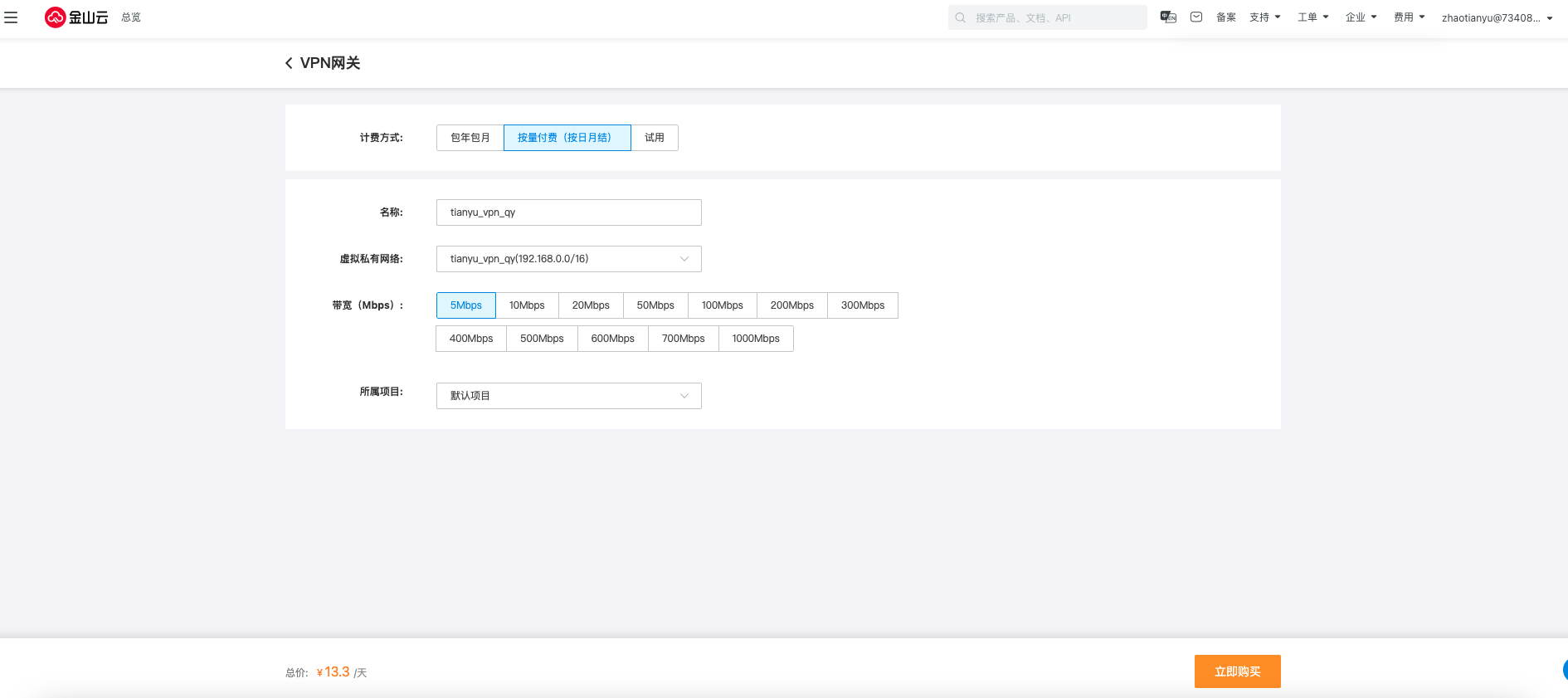 名称 | 不填写默认“Ksc_vpn” |