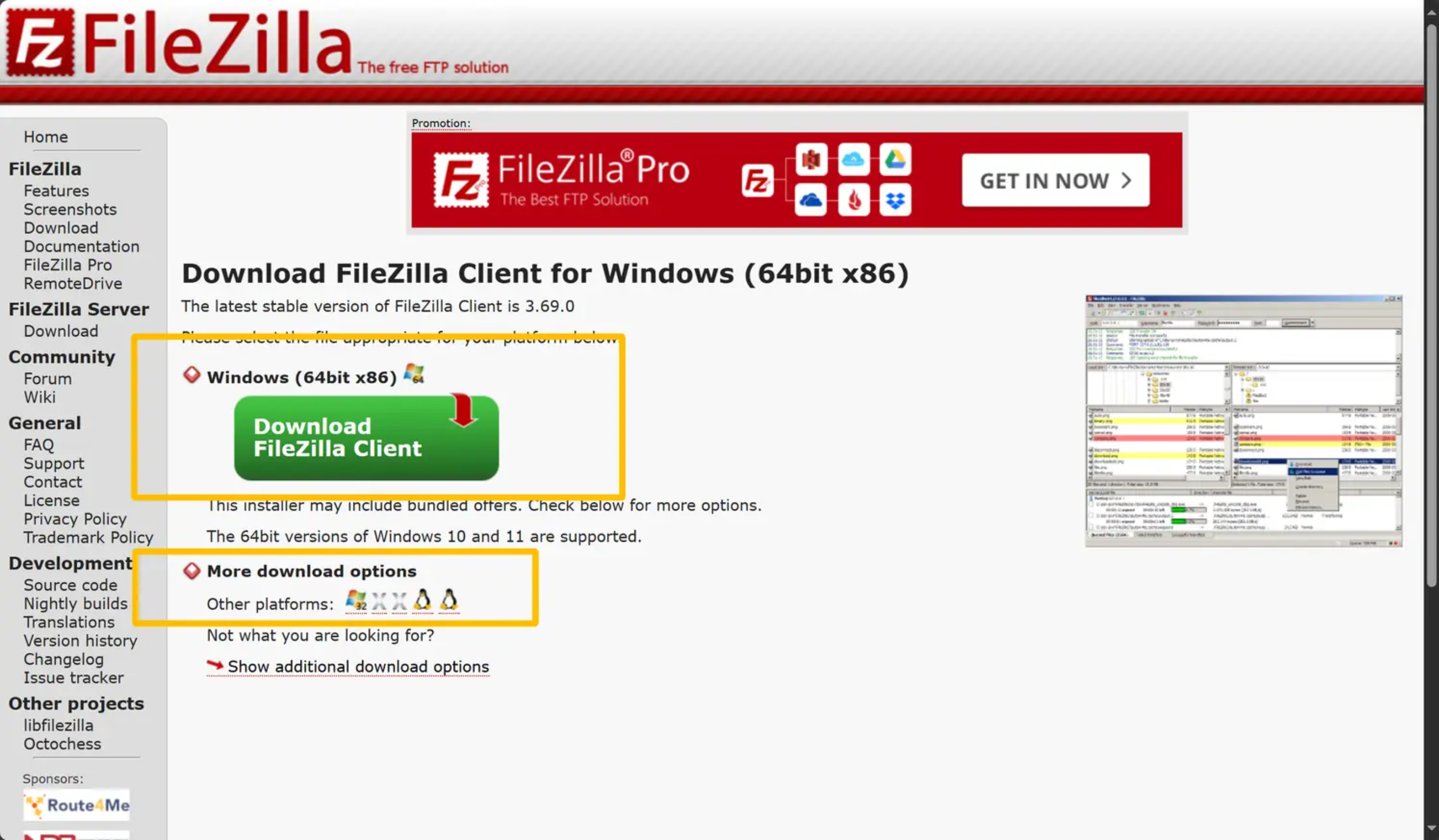 请在官网上下载FileZilla Client,并根据自己的操作系统选择相应的安装程序,如下图: