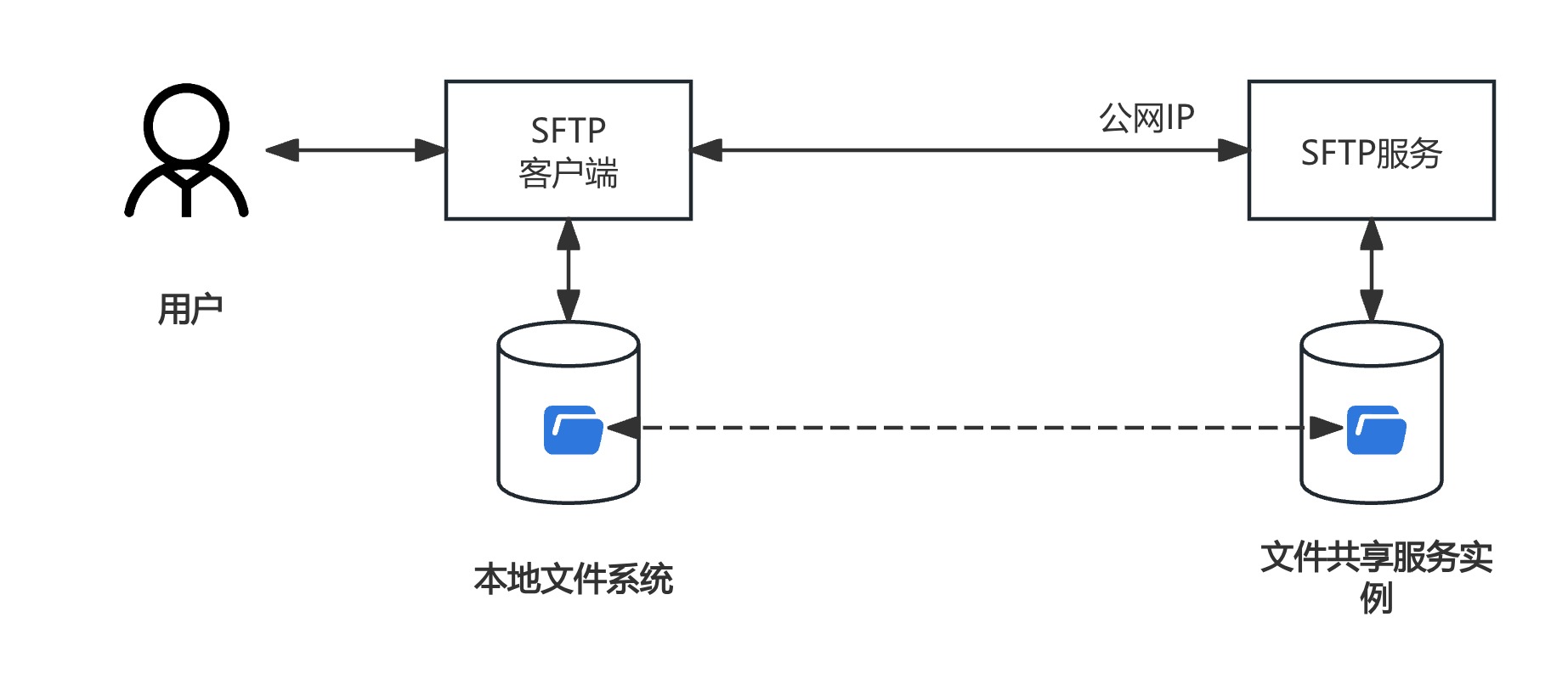 为了方便用户上传文件到文件共享服务实例,或者从文件共享服务实例下载文件,我们设计了SFTP服务。通过SFTP服务,我们可以从windows系统、Linux系统、MacOS系统上传或下载文件,同时有丰富的上传工具可以使用,包括命令行工具和可视化的图形界面客户端。