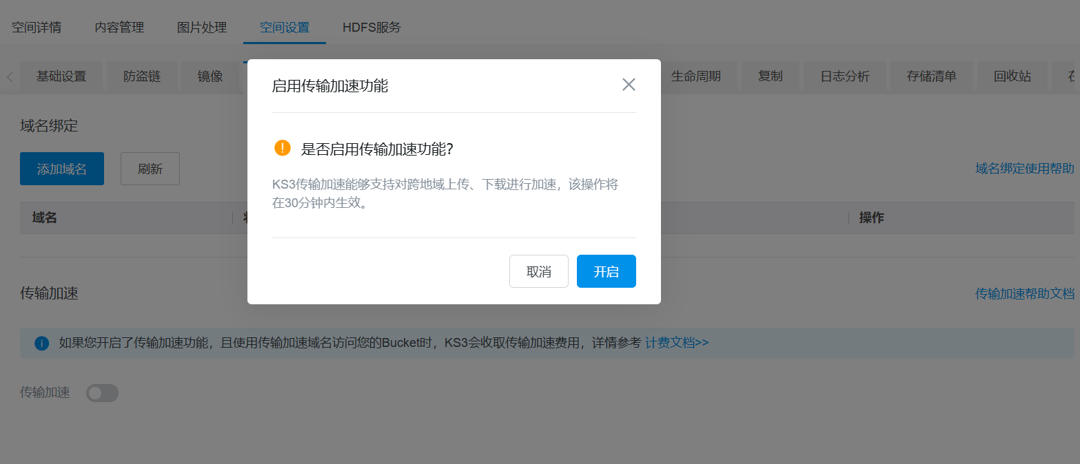选择需要开启传输加速的bucket。