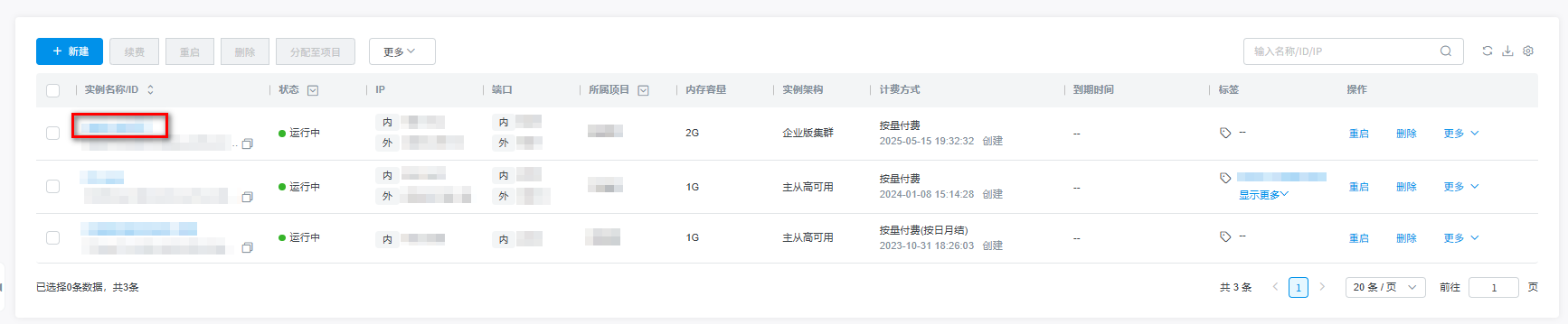 2.单击实例列表中的实例名称进入实例详情。