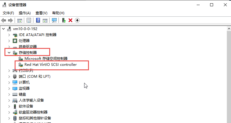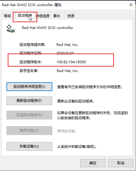 5.1.点击设备管理器-》存储管理器-》Red Hat VirtIO SCSI controller,右键选择属性,点击驱动程序
