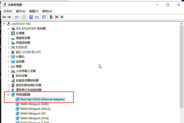 5.2点击设备管理器-》网络适配器-》Red Hat VirtIO Ethernet Adapter,右键选择属性,点击驱动程序