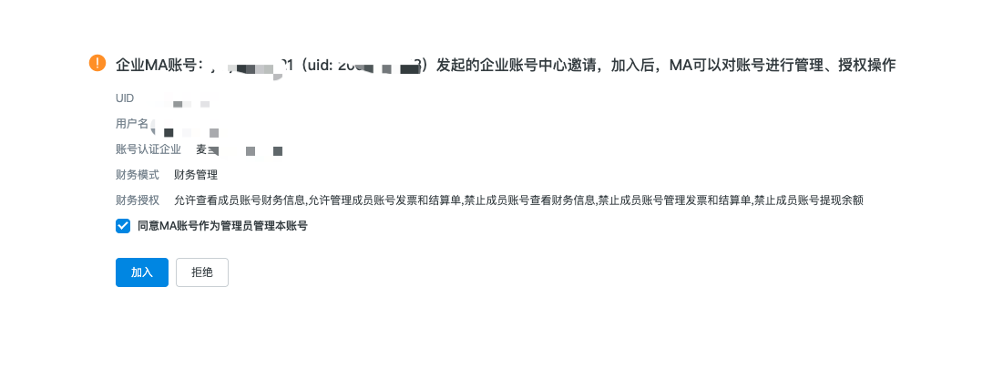 升级成为企业账号中心后,原企业财务管理主账号将默认成为企业账号中心的MA账号,MA账号可以管理原企业财务管理内的所有成员账号,拥有对组织内所有成员账号的超级管理员权限