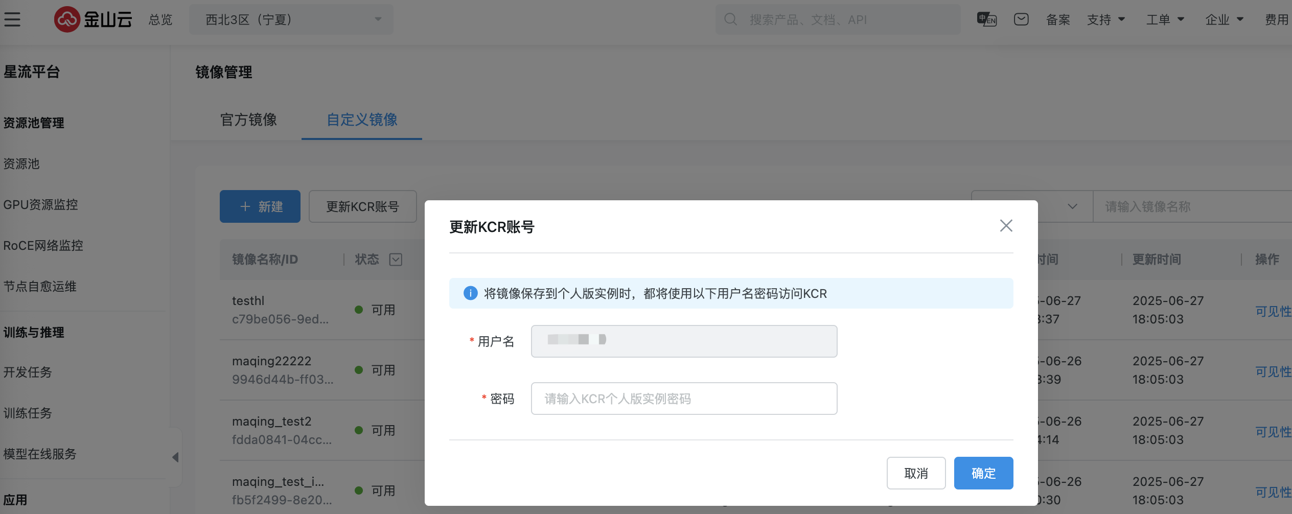 若您在进行开发任务时有自动保存镜像需求,或需使用自定义镜像进行任务拉起,请先创建容器镜像仓库实例。